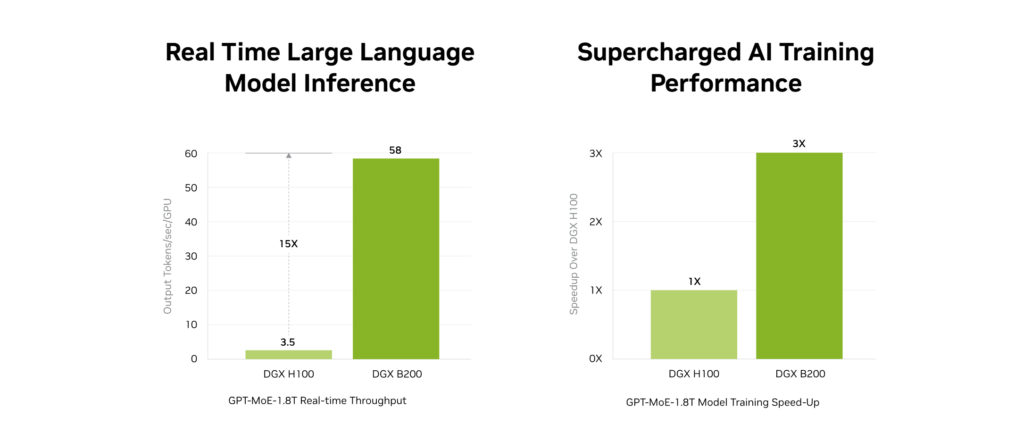 In tests, it annihilates older GPUs like H100. NVIDIA claims 15x performance in LLM inference and 3x in training.